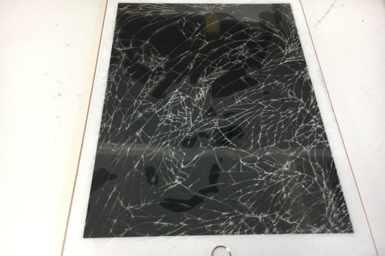 iPad第6世代の表面ガラスが粉々に割れた!画面修理後は新品同様に!専用の強化ガラスフィルム貼り付けサービス有![町田のタブレット修理店]
