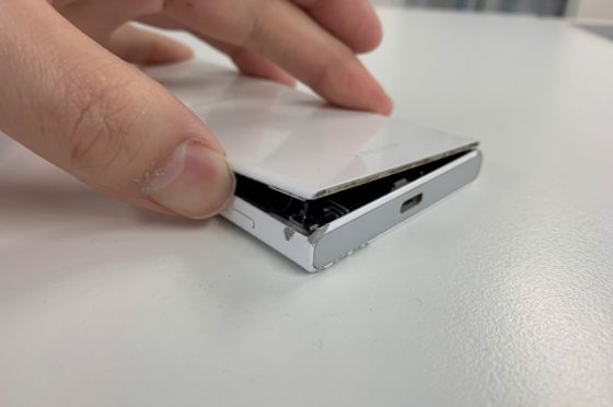 MONO MO-01Kのガラス割れで一部本体内部が見えている!液晶に何も映らない症状もデータそのままで無事復旧成功![町田のアンドロイドスマホ修理店]