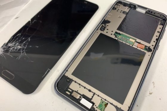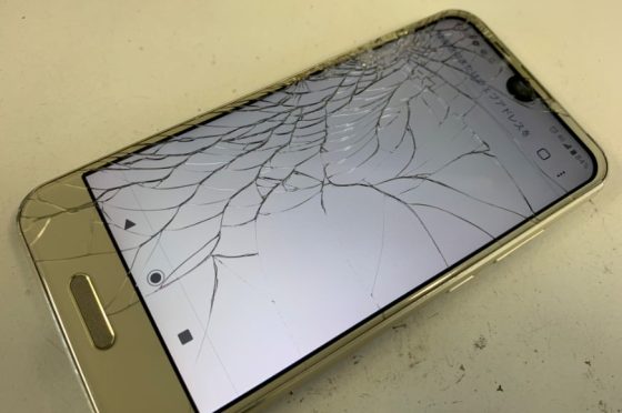 AQUOS R Compact(SH-M06)の表面ガラスが粉々になって操作の反応が鈍い!内部データを消さずにバックアップや復元不要で修理出来ます![町田のアクオスフォン修理店]