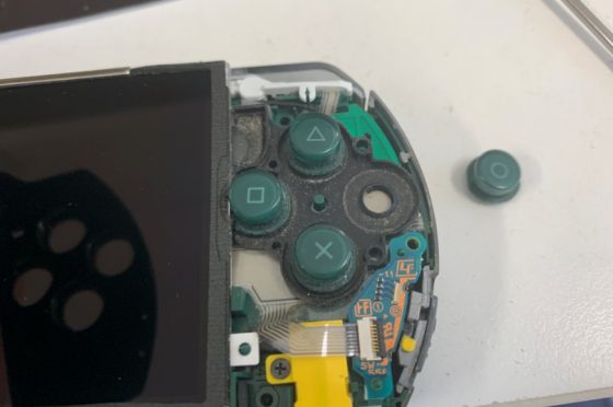 PSP(PCH-3000)の○ボタンが陥没!押した感触が無く押しても反応が無い症状がパーツ交換修理で改善![町田のゲーム機修理店]