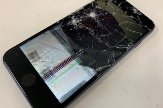 液晶画面破損で表示がズレて下の方に時間が移動している!ガラスも割れて激しく損傷したiPhone7が元通りに直りました![町田駅徒歩3分]