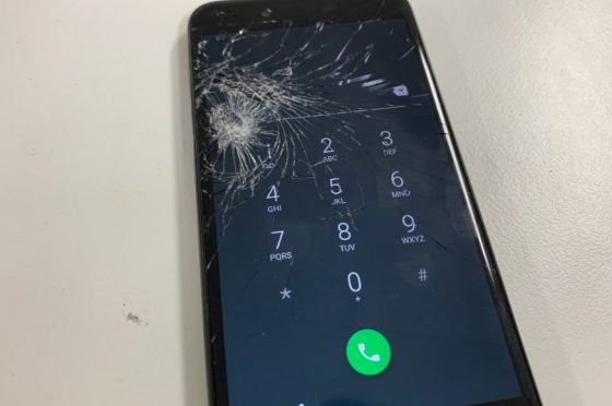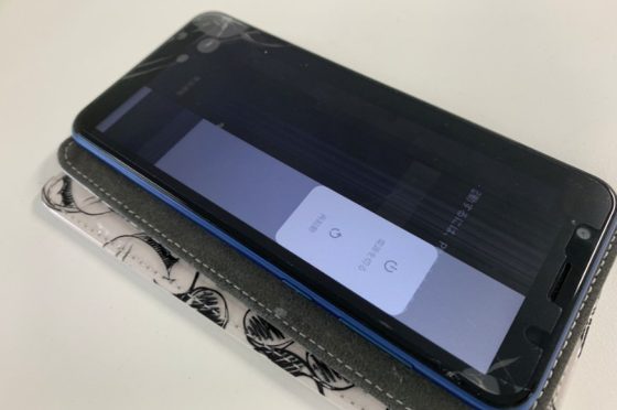 AQUOS sense lite(SH-M05)の表面ガラスが粉々に割れている症状が作業時間40分で元通り![町田のAndroidスマホ即日修理店]