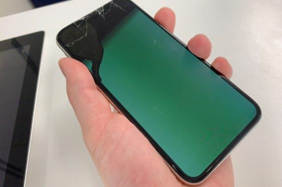 iPhoneXが落として壊れた!電源ボタンを押すと一瞬緑の画面が映るもののそれ以外何も表示されない症状が画面パーツ交換で改善![町田のiPhone修理店]