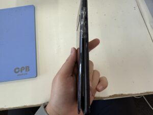 粘着が固く開けるのに時間がかかることが多いですが、今回はバッテリー膨張により中身が見えてしまっていましたが、そのおかげで簡単に開けることができました。