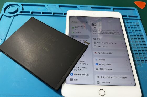 経年劣化によりバッテリー持ちが悪くなったiPad mini5のバッテリー交換修理