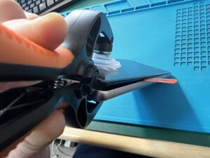 クランプ吸盤で隙間を作りつつ、オープニングピックで液晶を分離させていきます。