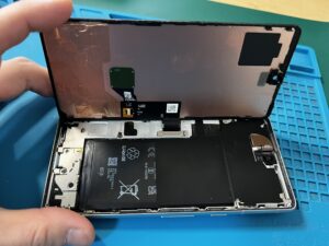 本来であればバッテリーの絶縁から行うのがセオリーですが、Pixel7の構造上やむを得ず液晶からの分離です。