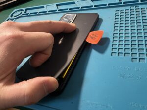 まずは背面の隙間を広げつつ、オープニングピックなどで分離させていきます。