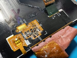 ↑新品のディスプレイを念のため準備、コネクタの位置から換装経路を確認します。