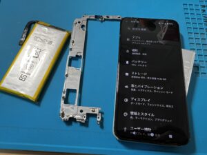 バッテリーも摘出、新品のバッテリーと液晶を再度仮付けして稼働点検します。