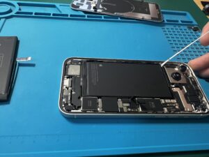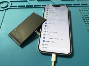 バッテリー劣化により起動不良を起こしているiPhone14Plusのバッテリー交換修理