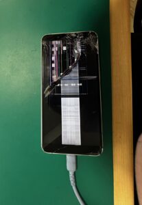 この様に落下衝撃でガラスが割れ、液晶にまでダメージが入ってしまい操作もできません。