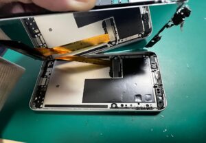 割れたガラスが飛び散って放置しておくのも危険です。各部を破損しないよう液晶を剥がしていきます。