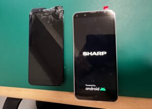 落下衝撃によるガラス割れ・液晶不良で操作できなくなってしまったAQUOSsense3basicのフロントパネル交換