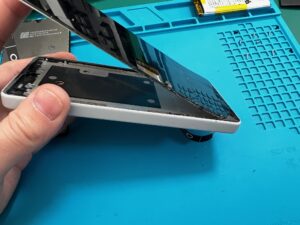 ケーブルやバッテリーにダメージが入らないよう慎重にバックパネルを剥がし、基板部分を露出させます。