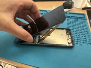 この機種は画面から分解なのでヘラなどで開ける際は液晶を傷つけないように細心の注意をはらっていきます。