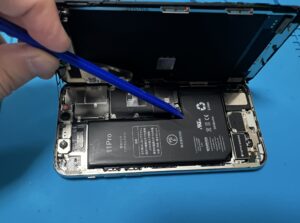 ↑iPhone11Proのバッテリーは通電コネクタと別に、もう一つケーブルが存在します。
