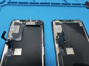 ↑続いて破損した旧ディスプレイから新品ディスプレイにイヤースピーカーを移植します。