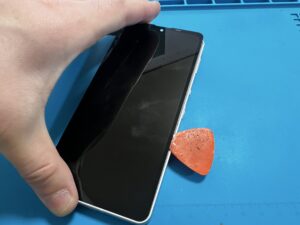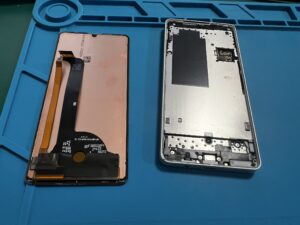 各部パーツを損傷しないよう慎重に液晶を剥がします。