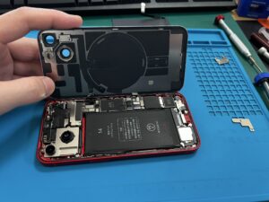 iPhone14は背面から基板・バッテリーにアクセスします。