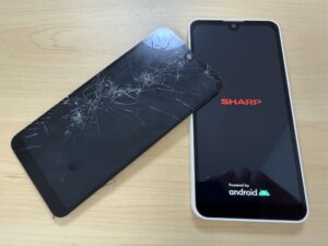 落としてしまって画面が破損してしまったAQUOS wish3の画面交換修理
