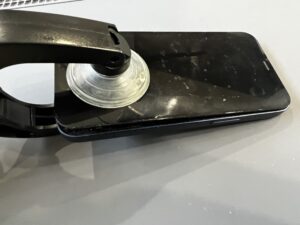 ヒートマットで加熱処理し、クランプ吸盤でゆっくりと粘着から剥がしていきます。