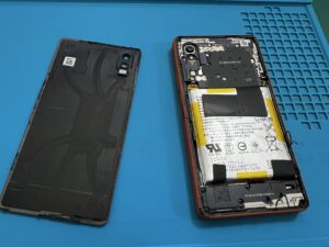 この様にバッテリーが膨張し、バックパネルが剥離して内部が見えてしまっているXperiaAceⅢです。