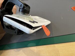 こういった小型のスマートフォンは粘着を剥がすのに苦労することが多いのです。