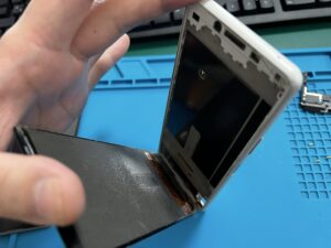 この時点で液晶のケーブルと基板が露出したので、新品のパネルを仮付けして点検を行っていきましょう!
