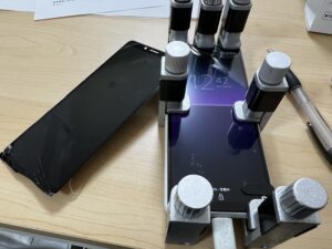 新品のパネルを一旦外し、ヒートマットで表側を加熱処理して粘着を弱らせます。