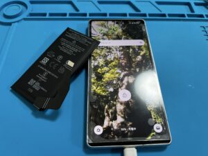 経年劣化によりPixel7aの膨張したバッテリー交換修理