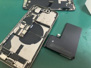 iPhone 14Proの大きなバッテリーを綺麗に取り出せばおしまいなのです。