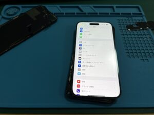 落下衝撃による画面割れ、液晶不良を引き起こしたiPhone14ProMaxのディスプレイ交換修理