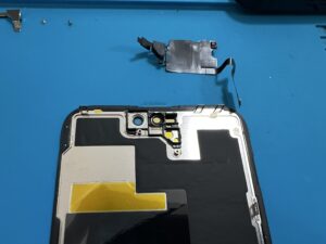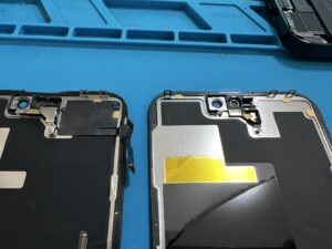 いったん新品のディスプレイを摘出し、旧ディスプレイからフロントセンサーを移植します。