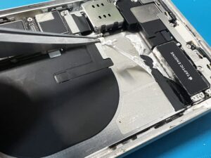 いつも通りパネルを留めるビスを摘出し、加熱処理しながらディスプレイをこじ開けます。