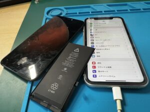落下衝撃によりガラス割れ/液晶不良を引き起こしたiPhone11のディスプレイ交換修理