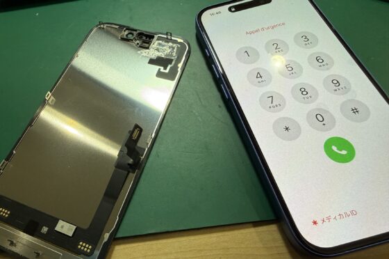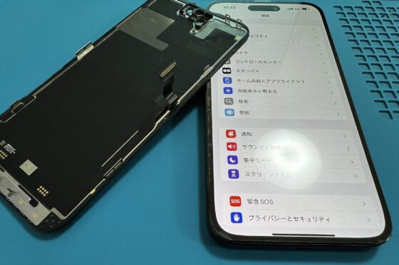 落下衝撃による画面割れ、液晶不良を引き起こしたiPhone14ProMaxのディスプレイ交換修理