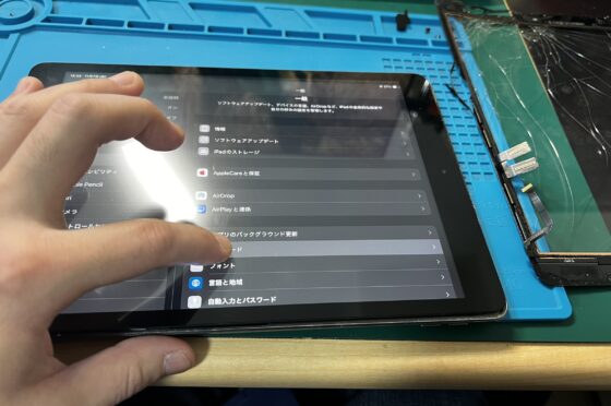 落下衝撃によりタッチパネルが割れたiPad7のガラス交換/液晶クリーニング修理