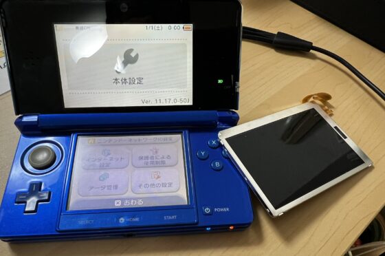 荷物の圧迫により上側液晶にダメージが入ってしまったNintendo3DSのスクリーン交換修理