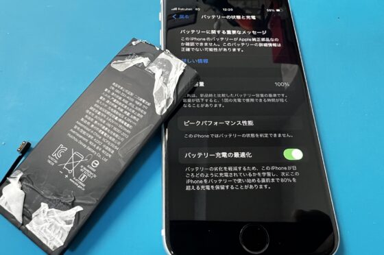 経年劣化により電池最大値が減ったiPhoneSE2のバッテリー交換
