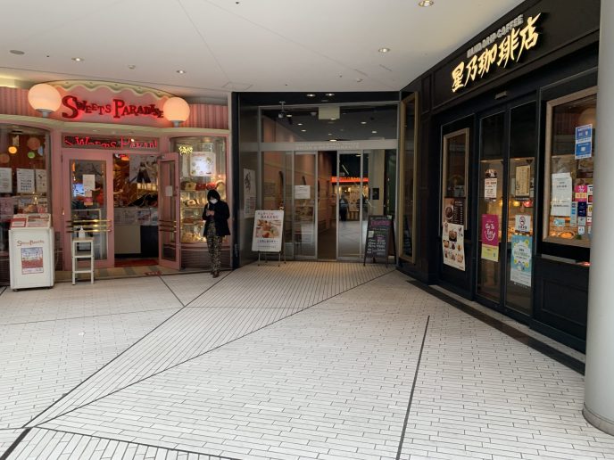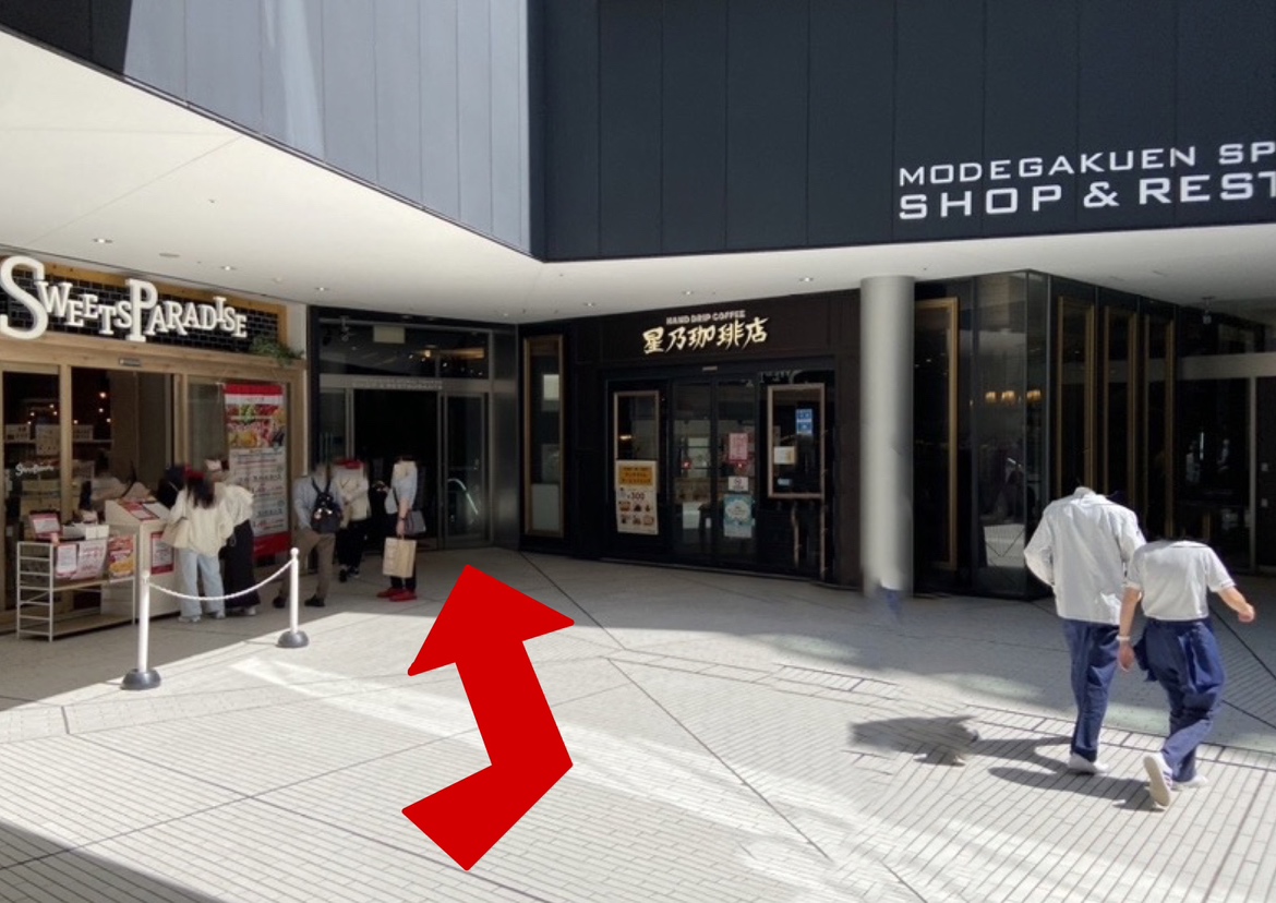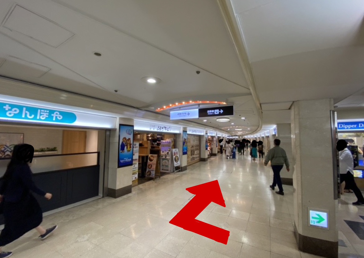 地下街からの行き方でございます。 喫茶店やスイーツ屋さんが周辺に沢山ございますので、 修理の待ち時間などにどうぞごゆっくりしていってください。