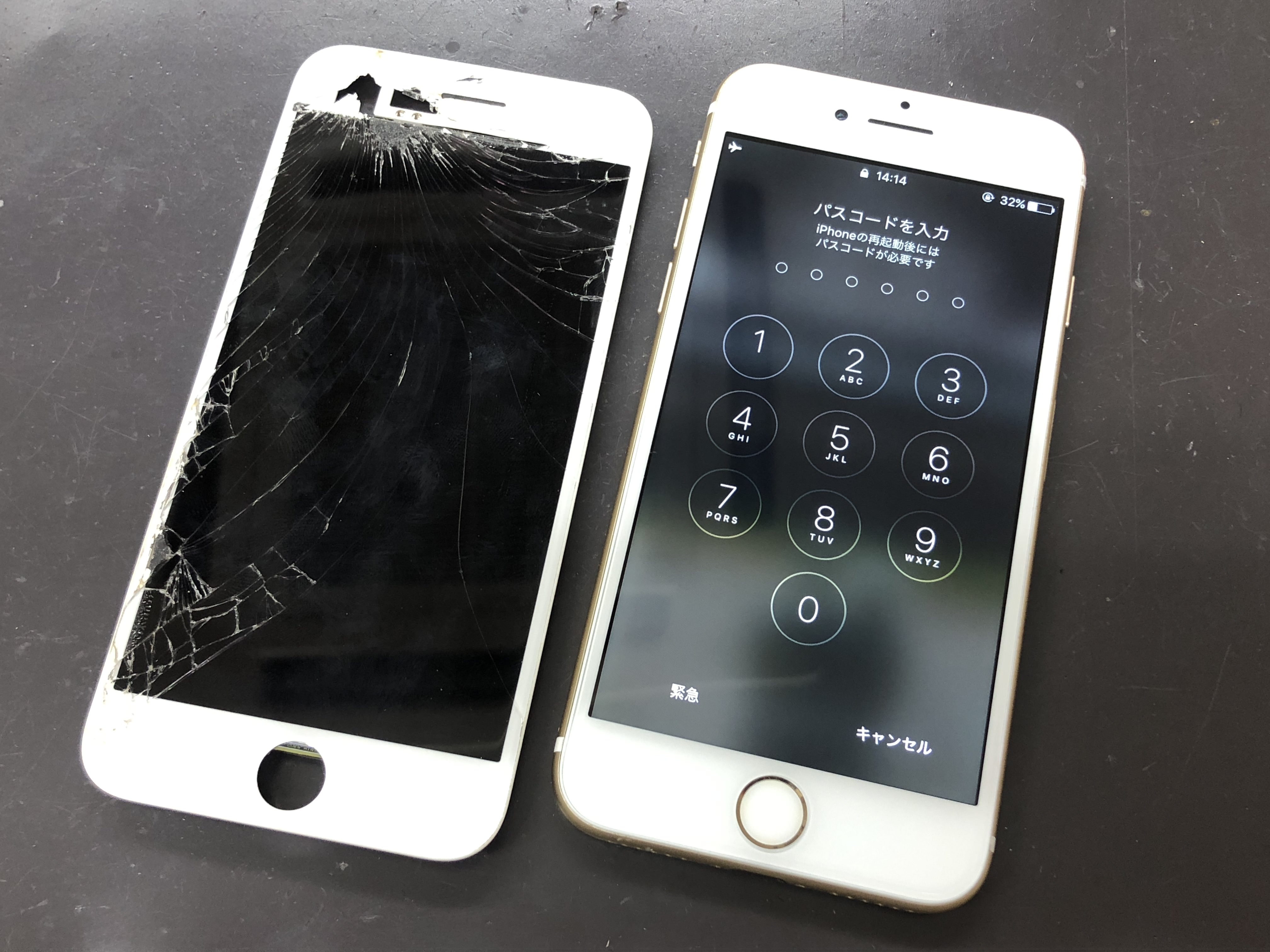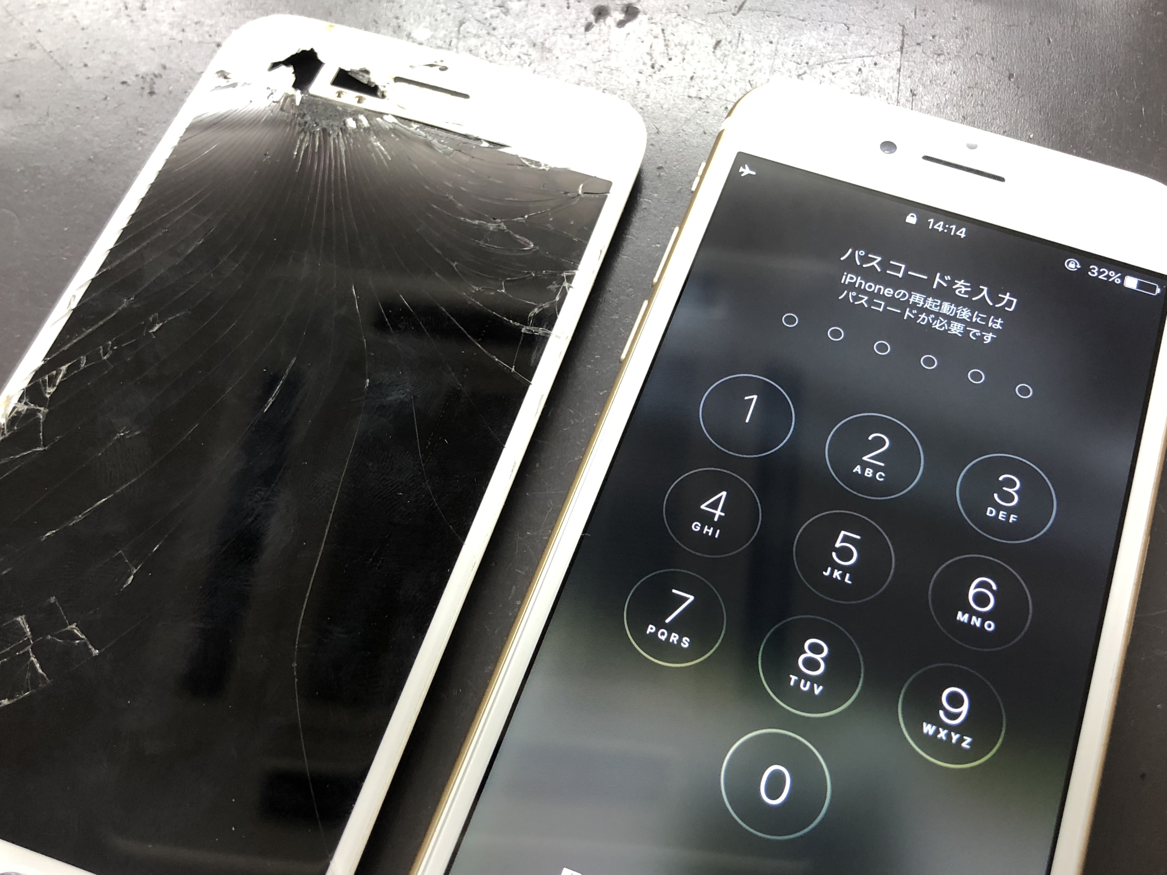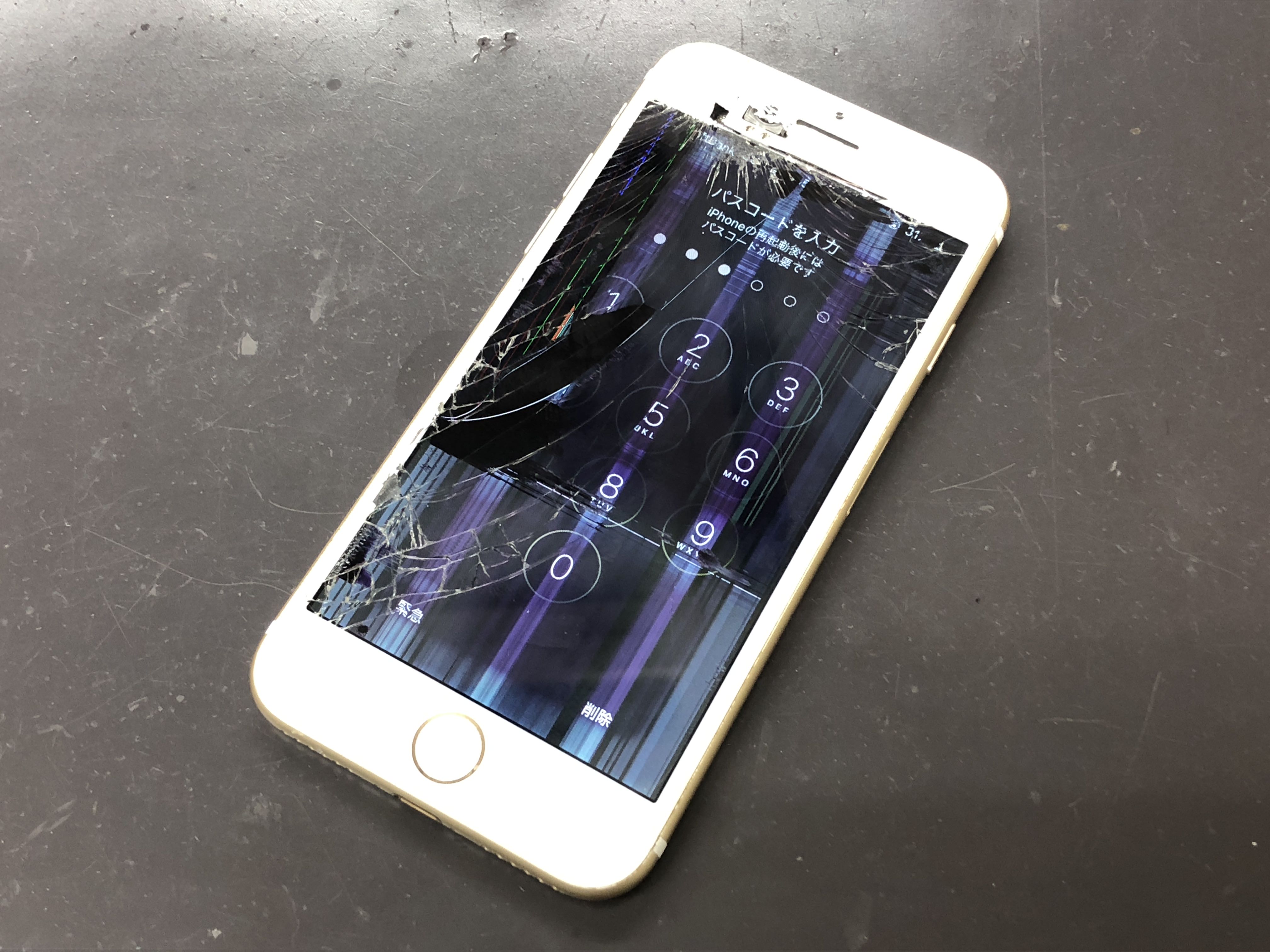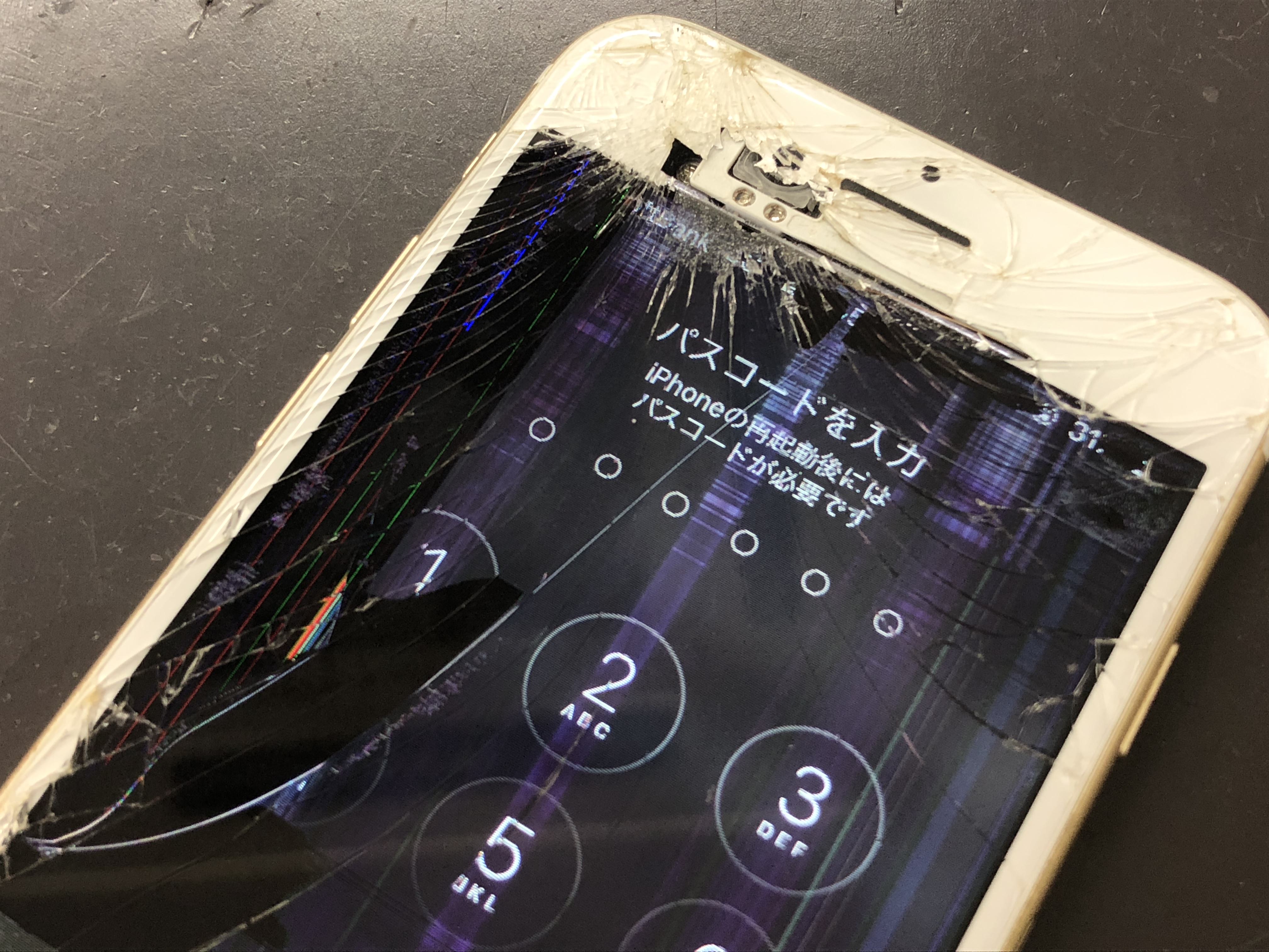結構激しめに画面の割れに見舞われたiPhone7の修理を承りました。