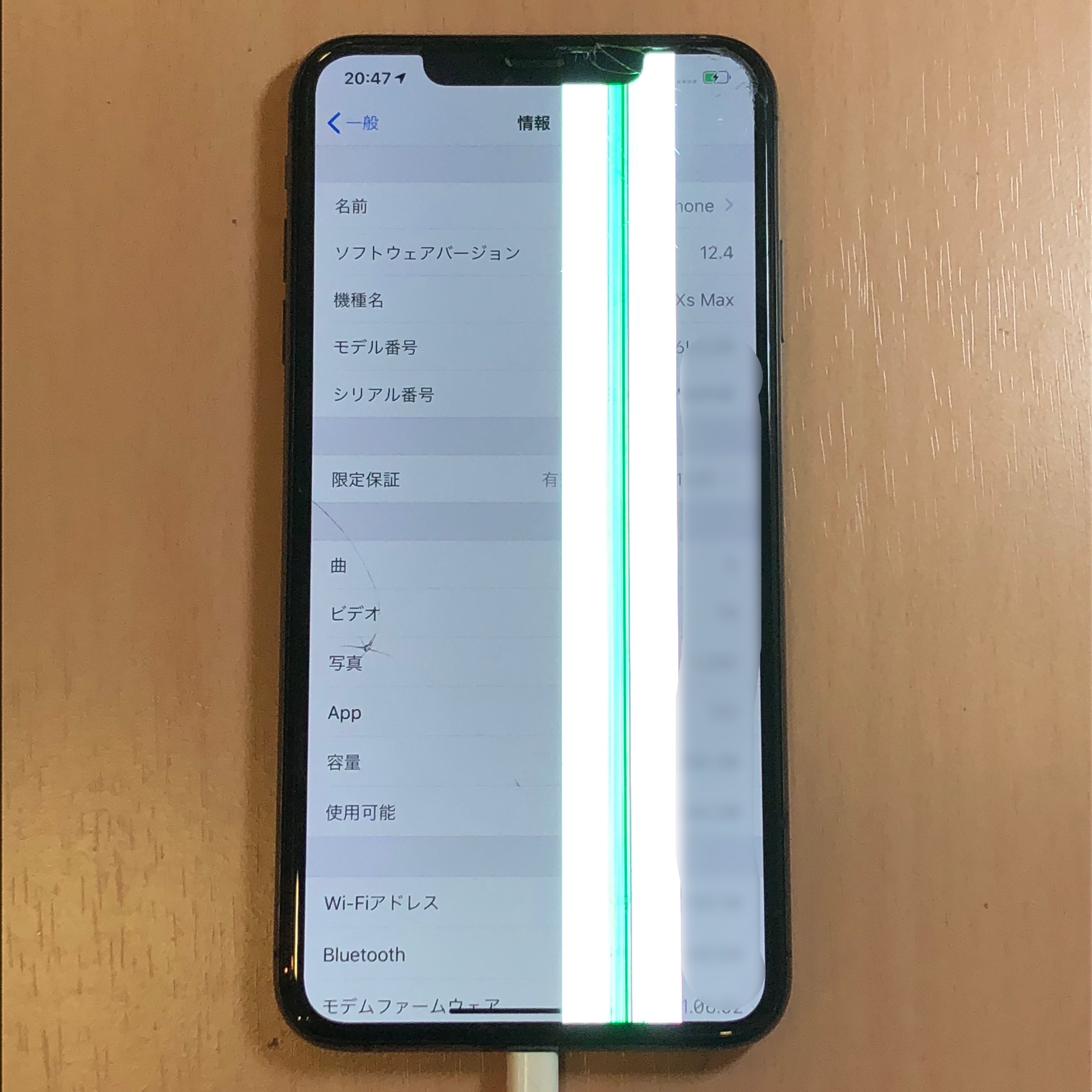 落したら画面にレーザーの様な表示が出現してしまったiPhoneXS MAXで修理のご依頼です