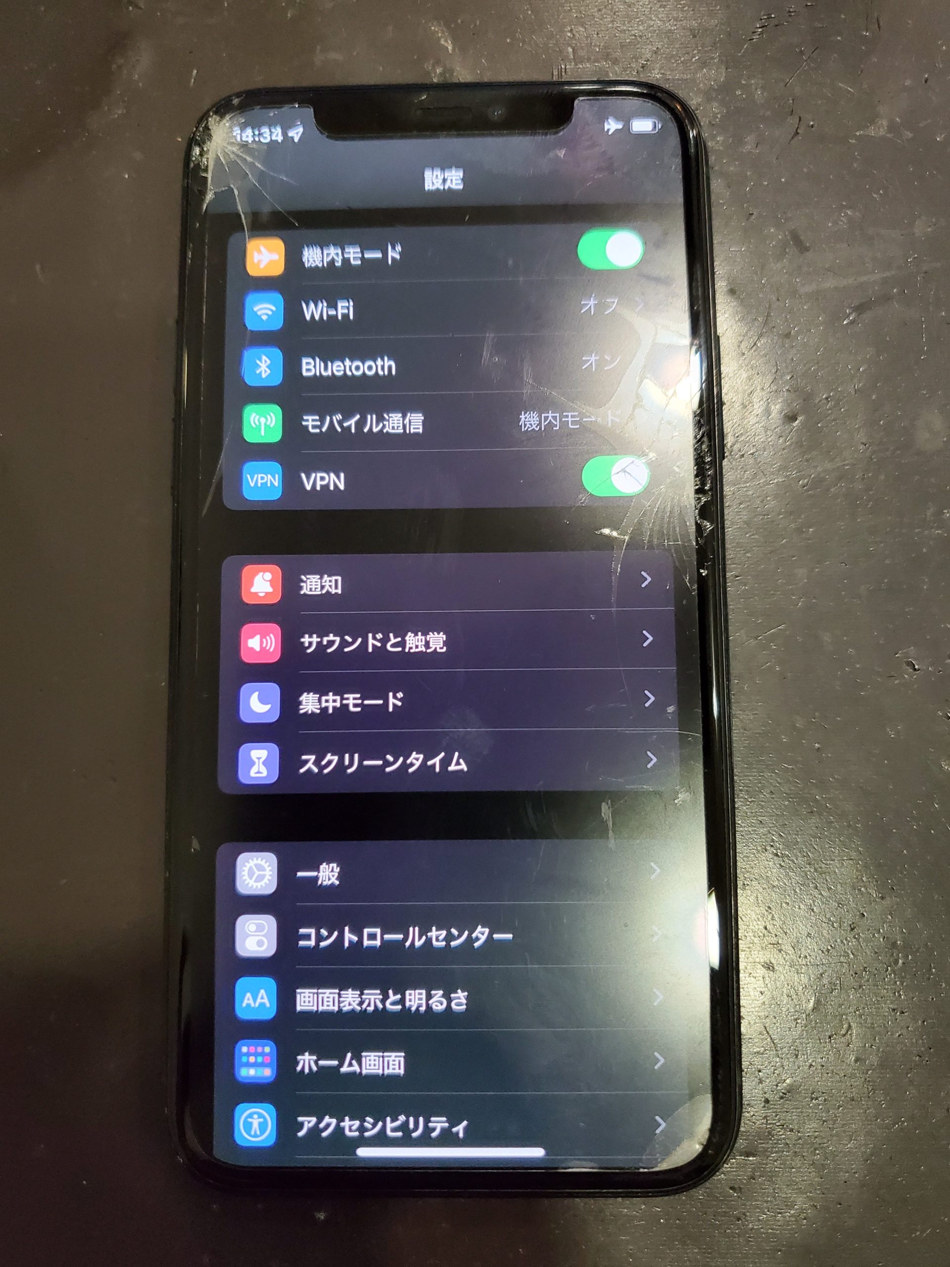蜘蛛の巣状にひび割れてしまったiPhone11Proの画面交換修理です。