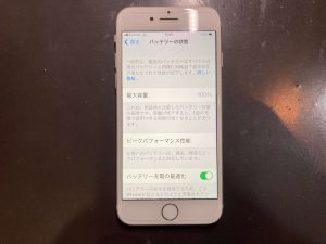 お預かりしたiPhone8は最大容量100%に改善されております!