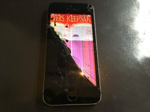 画面を切り裂くようにひび割れてしまったiPhoneSEの画面交換修理を承りました。