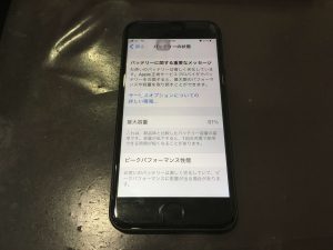 今回は、そのバッテリーの状態を確認した際に、「バッテリーに関する重要なメッセージ」が表示されたiPhone8のご紹介です。