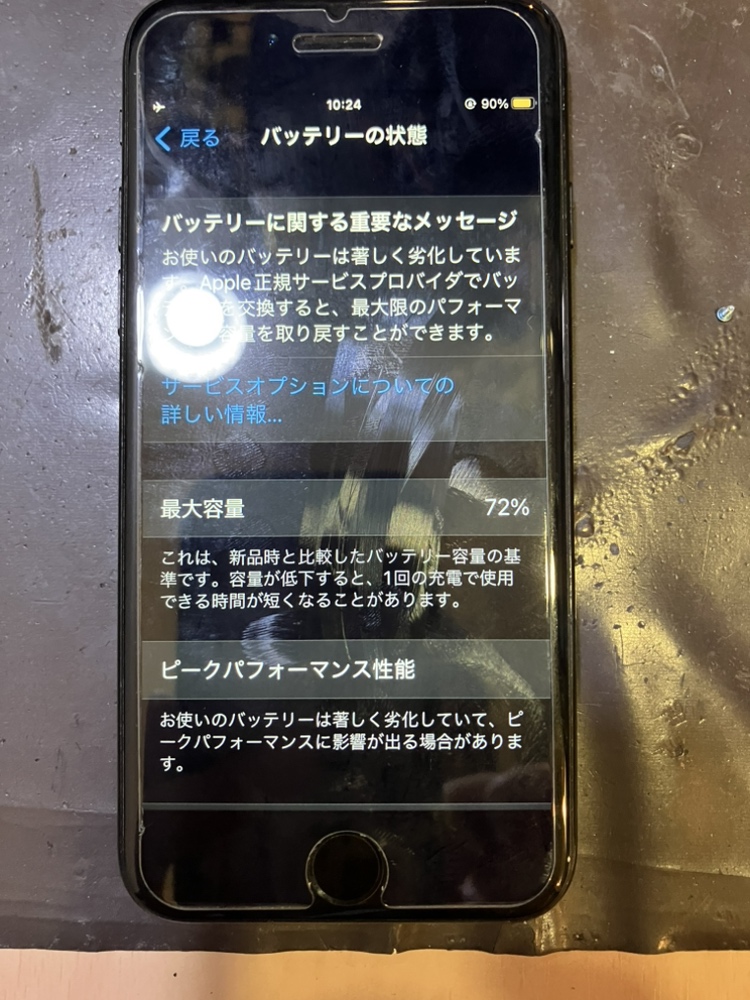 iPhone7バッテリー交換 最大容量が72%に バッテリー交換すれば持ち時間アップ!即日修理もOKです!