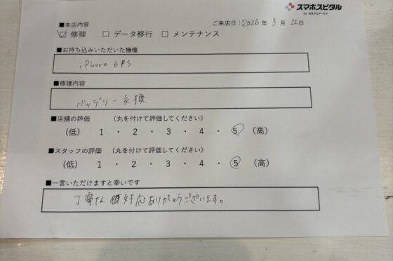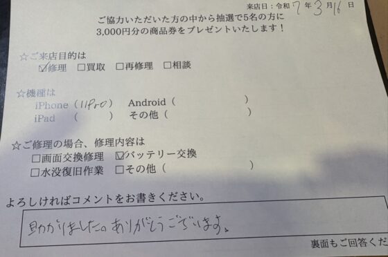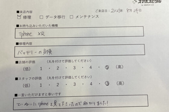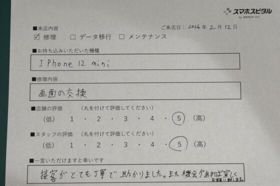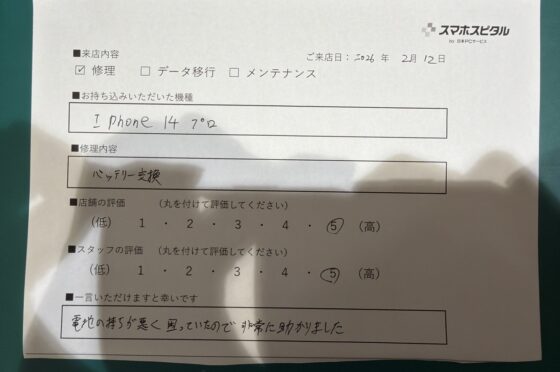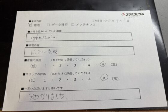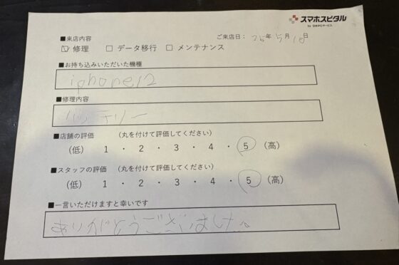 iPhone12のバッテリー交換をご対応させていただたお客様からお声をいただきました!