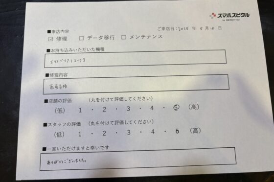 弊社の修理サービスをご利用いただいきましたお客様の声です。